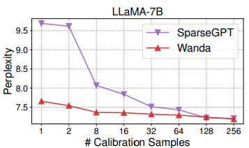 - Wanda는 calibration sample 수가 적어도 안정적