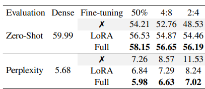 - 주요 결과 (LLaMA-7B, 50% unstructured sparsity):