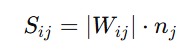 - weight magnitude pruning metric + input activation의 norm 곱이 weight importance를 평가하는 데에 효과적